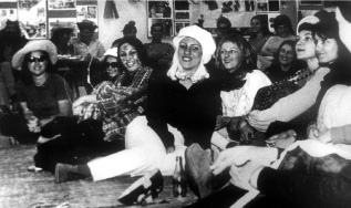 Tsippi Fleischer (extreme left) with her students. Purim 1972, Tel Aviv.